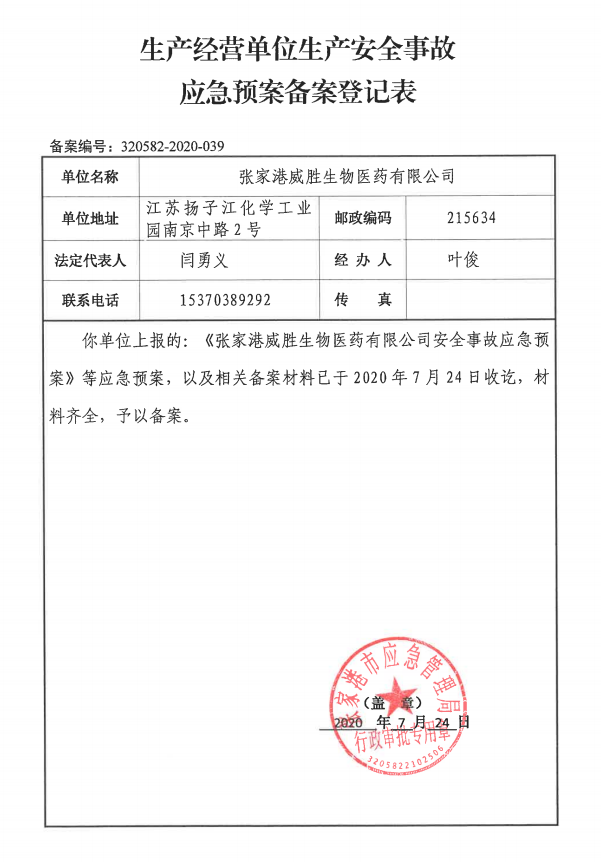 生产安全事故应急预案备案登记